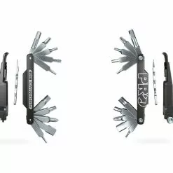 Das Performance 22 Minitool von PRO bietet Dir nicht weniger als 22 Funktionen an einem kompakten Werkzeug. Es ist mit diversen Innensechskant- und Torxschlüsseln, Maulschlüsseln, einem Schraubendreher und verschiedenen Nippelspannern ausgestattet. Ein Kettennieter für 9- bis 12-fach-Ketten ist ebenfalls mit dabei. Du findest dort auch einen Reifenheber, einen Bremsbelagspreizer und einen Kettenhalter.
